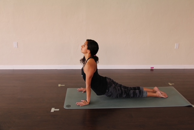 This yoga pose can be secretly tricky. It is again a very active pose and you can begin to feel tired here, especially after chaturanga. The purpose of this pose is to open your chest to allow for a long inhale.