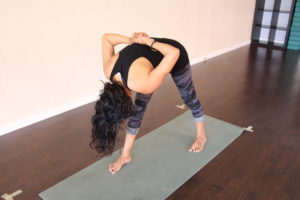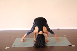 This pose is a mouth full, and in class you might just hear wide legged forward fold. This pose can sometimes feel scary as we shift a lot of weight into the balls of the feet. It is important to keep your legs engaged here by tightening your quads and squeezing your inner thighs towards each other to maintain stability. This pose helps again to calm the nervous system.