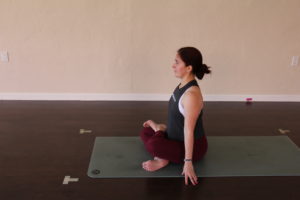 This pose also stretches the muscles through the outer hip. It helps to further open your hips up for the upcoming pose savasana. It is a seated pose which helps to steady your focus and create more presence.
