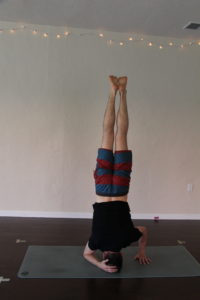 This pose is a more advanced inversion, and we don’t recommend doing it on your first day of yoga class. In fact, we generally run an inversion class once every three months so that our students can feel more confident in going upside. It is a great pose to play in and get yourself to be a little more present.