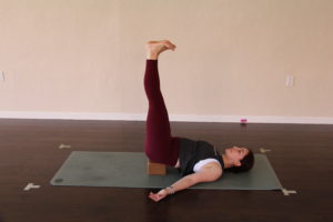 - Place a block underneath your sacrum and lift legs towards ceiling